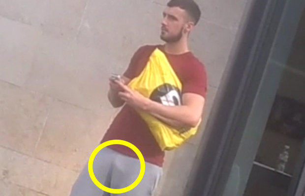 I think I have the answer: his sweatpants are very thick, but I do believe that this handsome guy forgot his undies in the locker of the gym changing room. Enjoy this candid video recorded down the street.