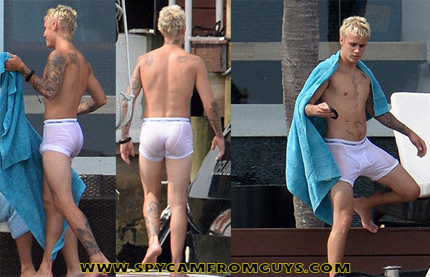 Do you remember when I posted the uncensored pictures of Justin Bieber caught completely naked on holiday? Well, this time I have a bunch of fresh new pics featuring the world famous pop singer caught while getting wet and wild on fourth of July. Watch him having fun in the ocean: his undies are extremely revealing and even if we cannot see his dick exposed this time, I believe these shots are absolutely hot!
