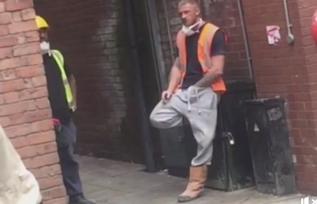 Does this worker feel itchy or he’s just horny? He has been caught with his hands in the pants and he continues to scratch his dick even if there a lot of people walking by that street.