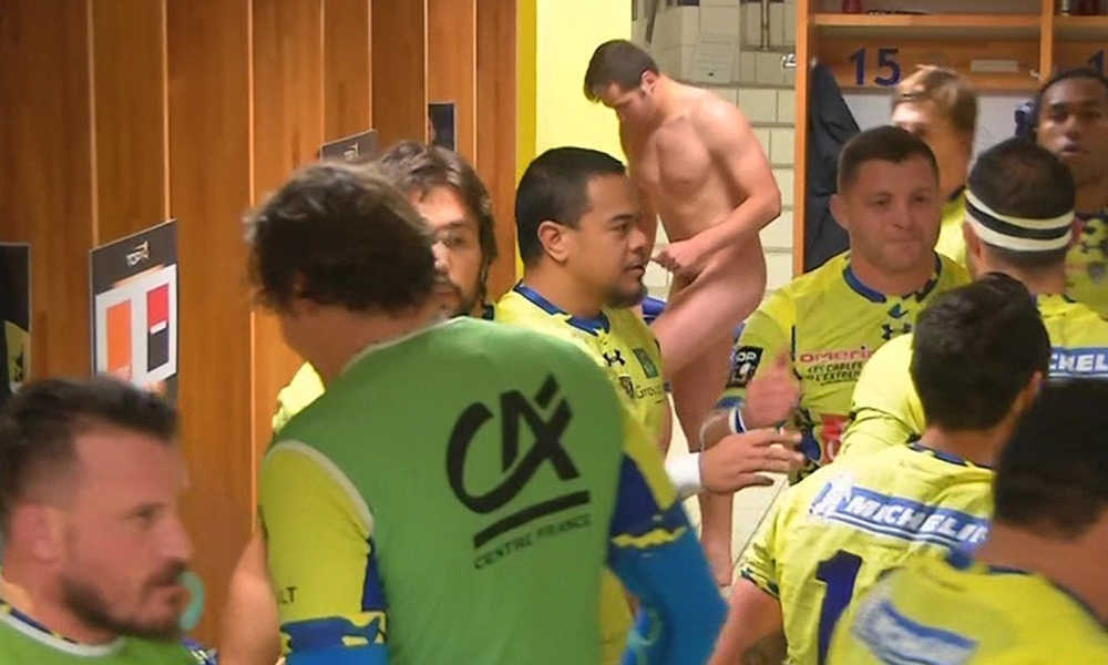 A month ago we had the pleasure to see handsome rugby player Julien Ory caught totally naked in locker room, today it’s the turn of another French rugby star who appeared completely naked on TV during a locker room interview. While a camera is inside the dressing room, rugby players keep chatting and getting ready to go to the shower room. One guy seems to be in a hurry: he is Damien Penaud, a handsome stud who’s not afraid to be the first to undress after game. Damian Penaud (born 25 September 1996) is a French rugby player. His position is centre, however, he has played on the wing. He currently plays for French club Clermont in the Top 14. You can read more about him from his official Wikipedia page, but you can only find the full uncensored video where he appears completely naked from EricDeman, the world famous video library featuring candid clips of every kind. Here you are some preview stills, enjoy this awesome rugby player getting naked in the dressing room while cameras are inside.