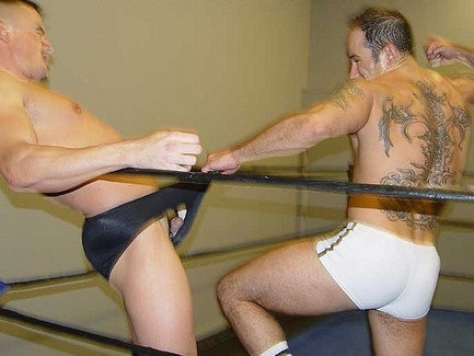 The first pic is about a classic situation that may occur very often: sportsmen dicks pop out are commonplace. Look at these fighters, the guy on the left reveals his cock accidentally during the fight.