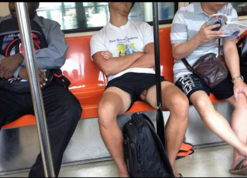 How do you call them? Dick slips or wardrobe malfunctions? Anyway these guys have been caught with their dicks popping out accidentally from their shorts in different situations. Even on a bus!