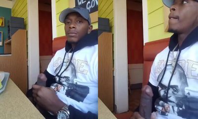 Hung black guy pulling out his hard cock while sitting at a table in a restaurant It sounds really weird, but...