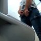 Under stall spycam recording a police officer peeing in a toilet With all the equipment a police officer wears, it is...