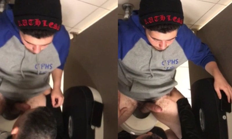 This horny dude is not satisfied with jerking off all alone: he found another horny man to give him his big hard cock for a blowjob while sitting on the bowl.