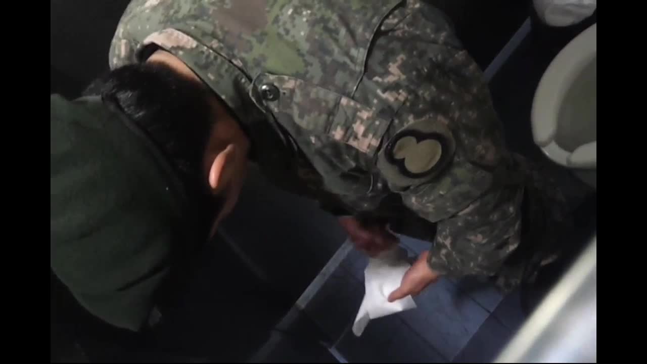 After wanking his dick off, the soldier cleaned his penis with some toilet paper: nice shot for a quick shuffle!