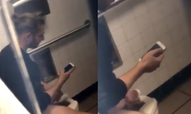 Look at this horny dude, I love his hair cut but above all I love the way he wanks his hard dick. He’s too excited to think about the chance to get caught by some voyeurs above stall. That’s exactly what happened in this public toilet. Enjoy these spycam video stills.