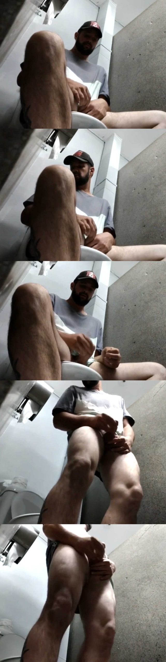 We recently saw a black guy jerking his dick in a public restroom, but it wasn’t clear if he wanted to masturbate or just take a few selfies with a hard cock. We don’t have to ask ourselves that question today. This guy is really horny and locked himself in a public toilet to jerk off in peace. This tranquility is interrupted several times, perhaps by some suspicious noises. In fact, this guy keeps looking up and around to see if someone is spying on him. But the spycam has been put under stall and allows us to see exactly what is going on in this restroom. Watch this guy play with his hard cock!