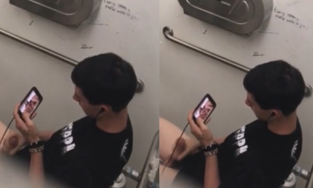 This dark-haired guy is so cute! He has been secretly captured on video while jerking off in a public toilet. Watching this spycam video you can even imagine the smell of rancid beer and stale piss: writing on the wall complete the picture! Enjoy this hot spycam video, watch this young college guy stroking and wanking his big cock!