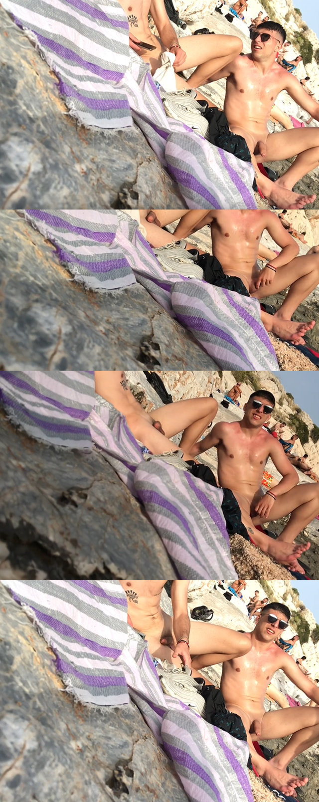 A day in the sun at a nudist beach, what could be better? Here at Spycamfromguys, we’ve watched dozens of videos and photos of guys caught naked by spycams on nudist beaches around the world, and from time to time it happens that we catch a few guys getting aroused while there. Boners and erections are almost the order of the day on nudist beaches, you just have to be in the right place at the right time. And today we can say that this was the case for the voyeur who caught this horny guy at this naturist beach. With these candid photos we can spy this dude while relaxing with a friend and sunbathing. At some point something happens and instead of lying down to hide the little “accident,” he keeps his position and what’s more starts playing with his uncut cock. So, his boner does not disappear! In fact, I begin to think that he loves to show it off. In any case, I can say that I would have loved to be nearby and enjoy the scene live.