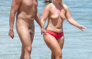 When I go to a nudist beach, first I take a quick look at how many married or engaged guys are naked. I note that every year more and more straight guys come to a nudist beach bringing their wives or girlfriends (maybe girls don’t get totally naked but I don’t care). These straight guys convince their partners to spend a day at a nudist beach because they wanna relax and sunbathe without any kind of fabric. Actually they’re not completely relaxed as they continue seeing naked women passing by the seashore, sometimes causing them an unexpected erection. At this time I start feeling restless too…