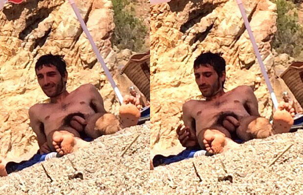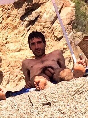 This is a good example: a nice guy is relaxing on his towel totally naked. I like his hairy uncut cock, I wish I was in front of him, lol