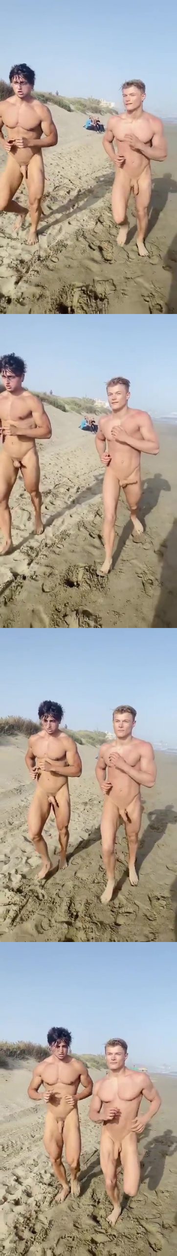 If you regularly follow the Spycamfromguys blog you know that I keep posting about nudist guys, both straight and gay, caught while relaxing or sunbathing at sunny naturist beaches. This is the first time we can admire two friends running naked with their huge uncut cocks bouncing up and down during an afternoon at the nudist beach. After drooling with the hot candid pics from the straight nudist guy walking with his gf on the shore, and the nudist buddy caught while getting back after a swim, or the Arab nudist man putting the sun cream on… here you are a different type of view on a nudist beach! Enjoy the candid video stills from two hung guys running with cocks out at the beach. You can find the full footage from Eric Deman if you wish.