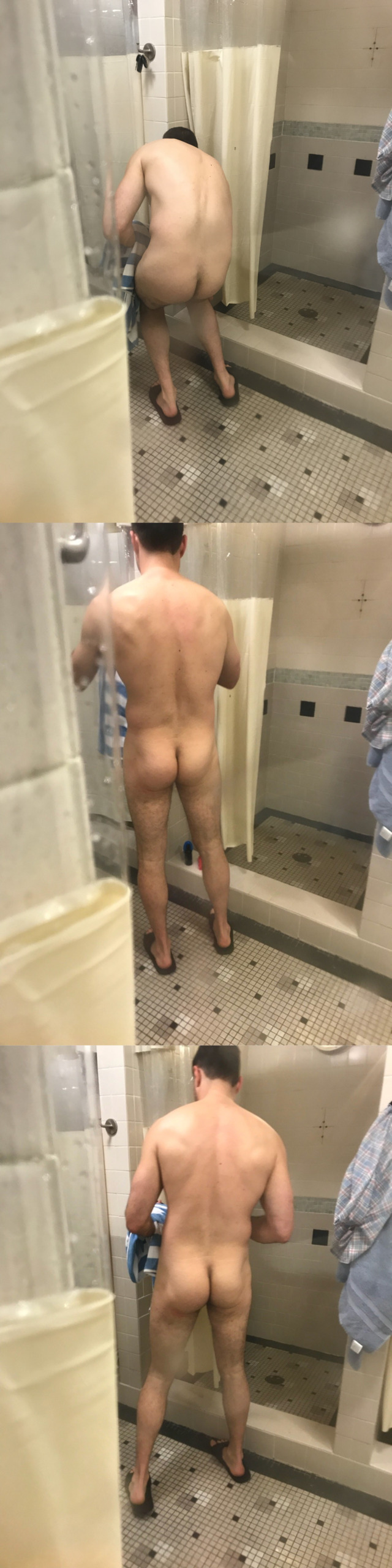This guy has been caught by his roomie while getting naked in the bathroom before taking a shower. Spy on this sexy dude and watch his beautiful hairy legs. What about his bubble ass? Do you like it? What about your gym showers? Are you able to reach your quota of guys naked in the showers every week?