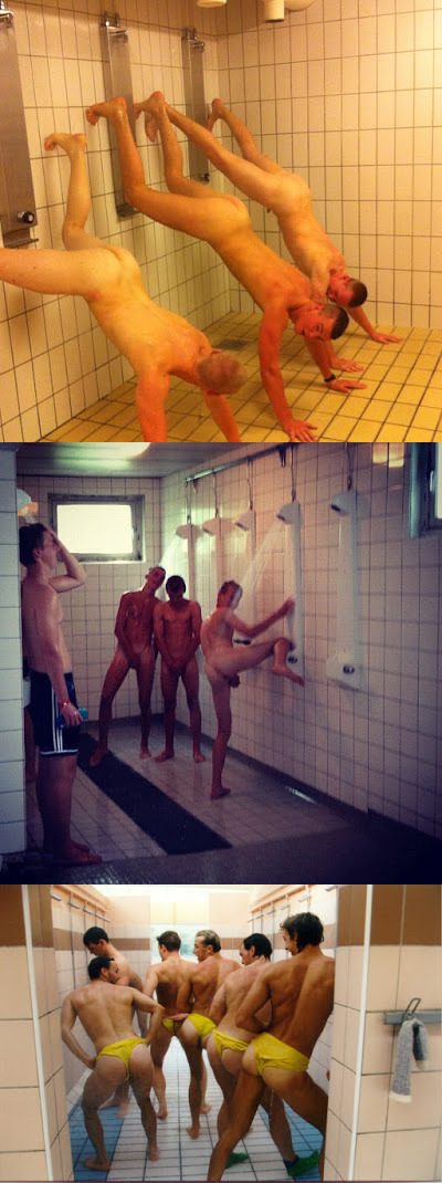 Have you ever noticed those straight guys who workout together in your gym? They often like to take the shower together too. I think there’s nothing wrong with it, sporty guys are used to spend time naked all together. Just think about guys who play soccer, they’re not embarassed to get naked and wash their bodies in a shower room. There’s one thing that really entices me, when I think about my collegues who have joined a soccer team: I wish I could watch them undressing and showering all together after a match.