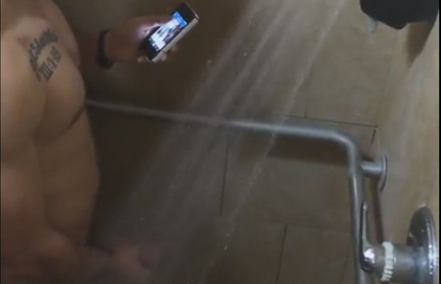 I have to admit that this is a new kind of video, even if I am a real voyeur! I have never seen a guy wanking in the shower while watching porn movies on his phone. I hope his phone is water resistant!