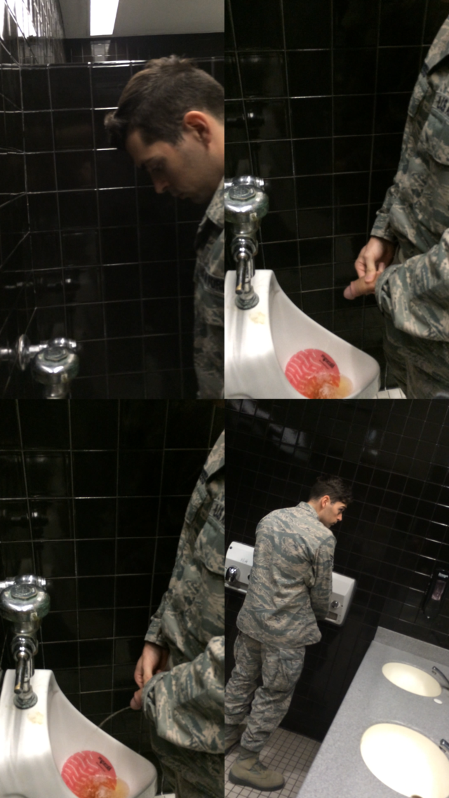 Military guy with big dick caught pissing