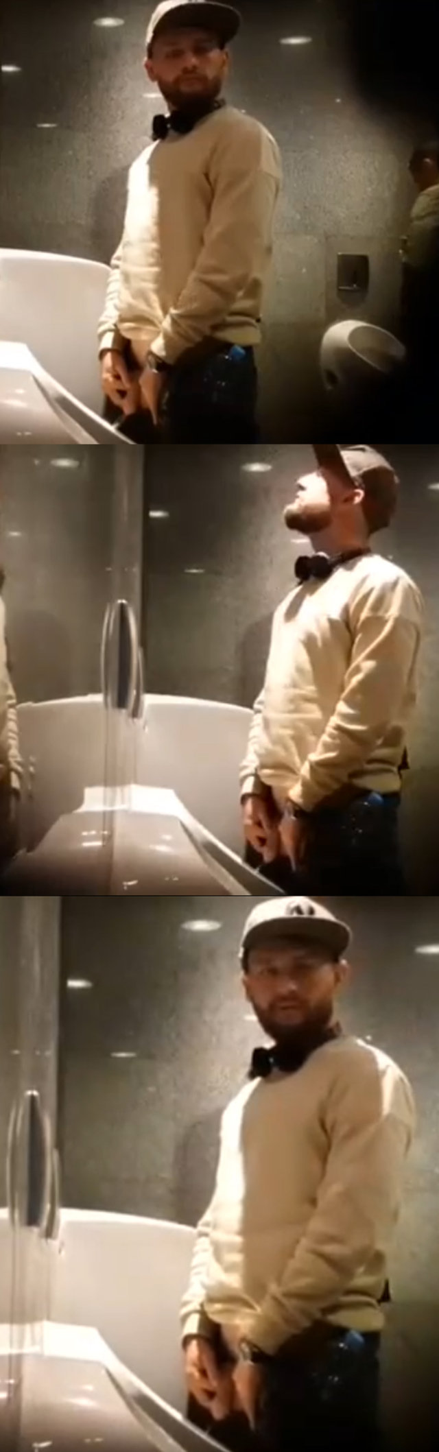Feel like next stall with these hot close-ups featuring a sexy bearded guy caught by a spycam while taking a pee at the urinals. He looks around very often but he does not notice the tiny hidden camera capturing him! Enjoy his thick juicy dick!