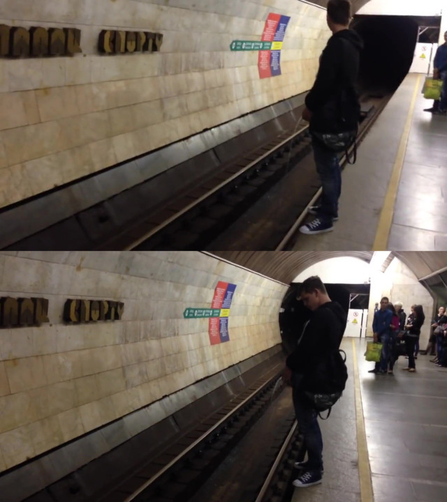 Here at Spycamfromguys we’ve seen many guys who needed to pee urgently and they choosed public places to pull their dicks out and take a wee, like supporters or cyclists. Today I wanna show you a drunk guy who didn’t think twice about unzipping his pants and pissing in the subway tunnel. Another drunk guy has been captured on video while peeing on the subway next to the other passengers.