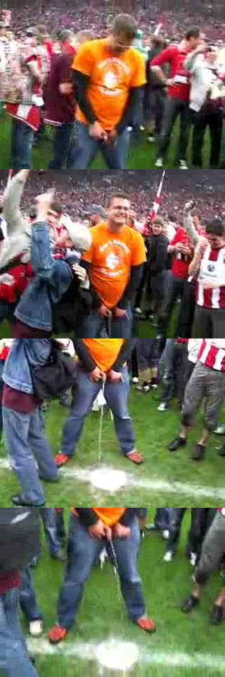 Perhaps an extra beer drunk during the game generated an urgent need for him to unbutton his jeans, pull out his cock and piss in front of everyone without any shame. This soccer fan pissed in public, without trying to hide at all, in fact he seems really proud to show his cock on a soccer field in front of hundreds of spectators. Of course, you can find the full video on EricDeman, the undisputed authority on videos of this kind.