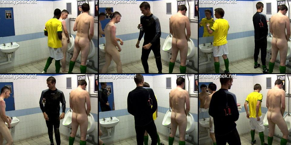The final whistle just blew & our 5-a-side football lads were bursting for a piss after being on the pitch for over 90 minutes. Just seeing the piss stream of the young lad in the yellow football shirt got me hard – And how about the fuckable butt on the naked scally lad towards the middle of the clip…. But watch out for the goalie sneaking a glance not only at the cock of the the lad next to him but the scally lad behind him as well when he leaves!! The dirty bastard!