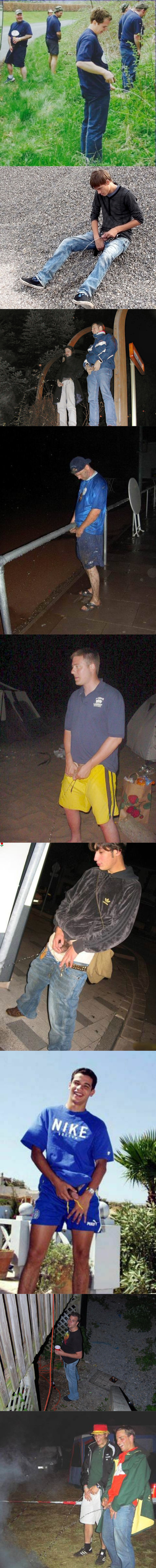 There’s a little something for everyone in here, dear guys! I selected some candid shots from guys caught pissing in public. Drunk guys after a night out, supporters, sportsmen and even a tired guy who prefers to piss sitting on the street.