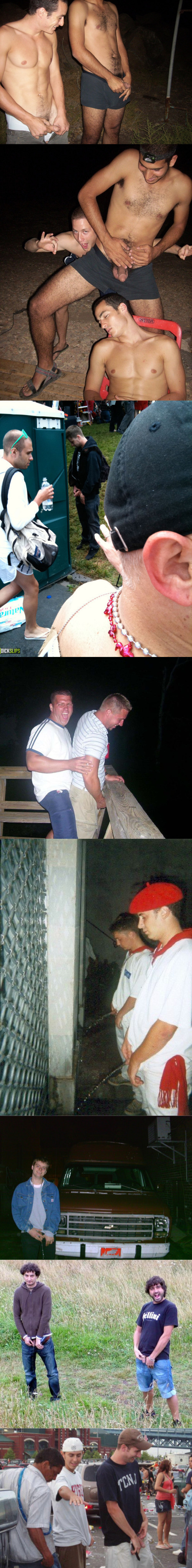 When was the last time you went to an open-air concert? How many guys did you see pulling their dicks out to take a piss? I think that certain experiences cannot be priced since they are priceless! Imagine you are in a park and 1000’s of guys are drinking beer, dancing and listening to the music: most of them need to pee, so they pull their cocks out and start pissing even next to you. That’s tremendously exciting and that’s why I collected some pictures featuring dudes peeing (and fucking around with their dicks out) in public places. Most of them are such proud of their pieces of meat that they show off them to the camera smiling and smirking!