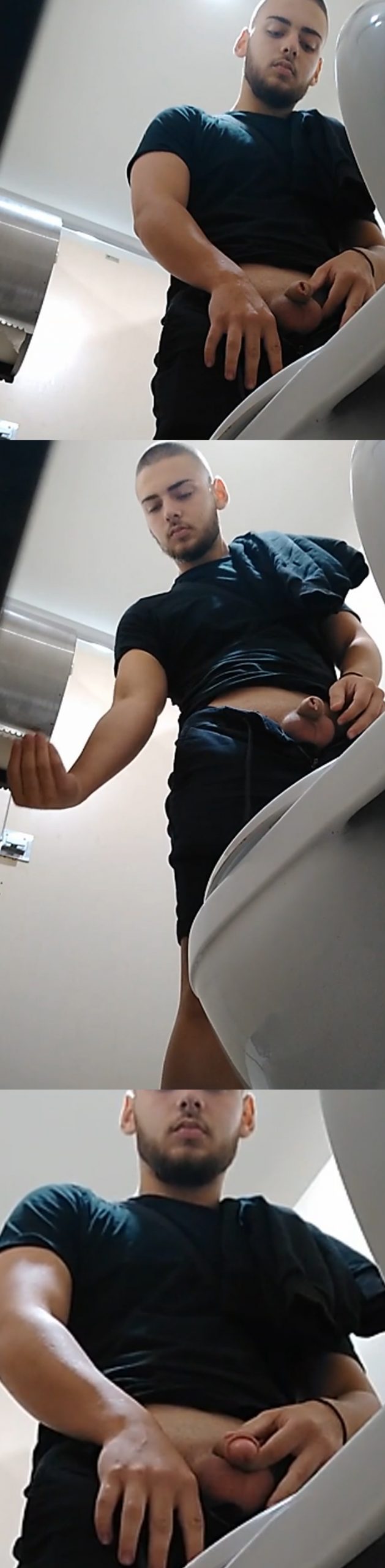 Spy on this sexy dude caught peeing in the public toilet. He thinks shutting himself in a toilet is safe enough to stay away from prying eyes and all those curious men at the urinals. He’s wrong! There’s a tiny spy camera installed above stall and now everyone can see him pulling out his nice uncut dick and peeing. Do you love his big balls? I can tell you he’s one of the hottest guys caught peeing in public toilets so far!
