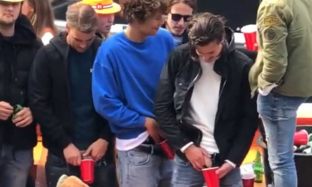 Watch these dudes pulling out their dicks and peeing in glasses while traveling on a boat