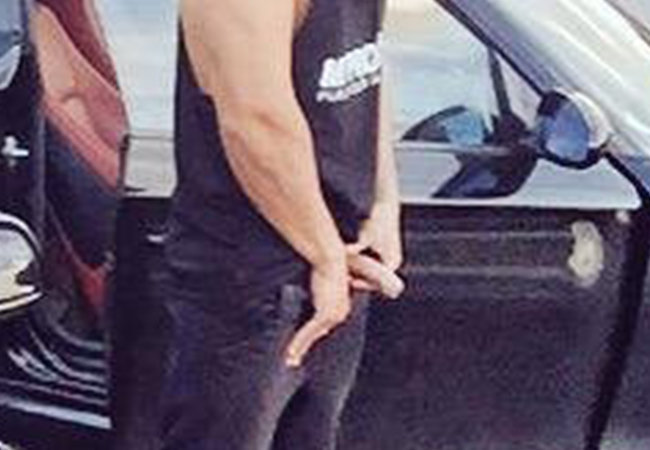 Maybe his friend took a selfie to capture that beautiful car, but actually he caught his friend while pissing. The muscled straight guy in tank top is taking a piss next to the car: watch his huge dick, I even made a close-up to let you better enjoy the scene! Do you think he got a boner while pissing? Share your opinion in the comment area below.