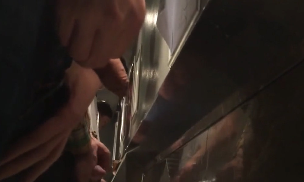 Here is another video shot with a spycam in the restroom of a club. Dim lights, loud music, and a guy pulling out his uncut cock to pee before returning to the dance floor and joining his friends to enjoy the party. What drives us crazy about this candid video? Obviously the foreskin of this uncut cock: really abundant! And also the time this guy takes to pee at the urinals. A really long piss.