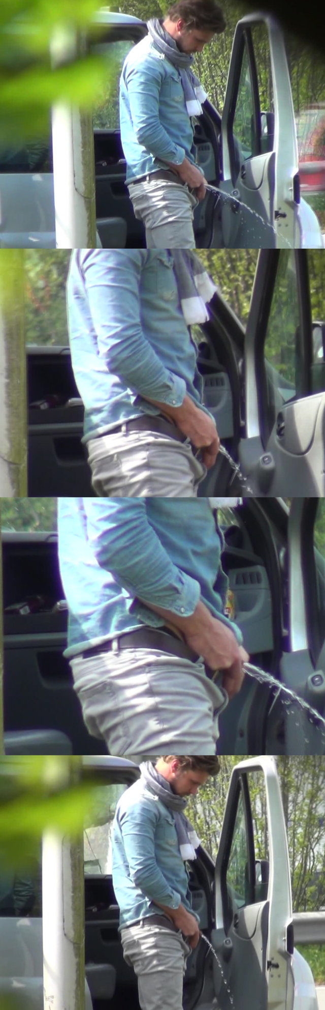 Today I spent hours surfing the gigantic archive of EricDeman spycam videos: I focused on the candid videos featuring horny truckers caught taking a leak in the bushes or in the service areas. I can tell you that spying on truckers pulling out their dicks to piss is extremely exciting! I wanna share with you some video stills from a young and sexy trucker caught on video while peeing next to the highway. He’s handsome enough to make you drool! Watch his piss stream, and tell me what do you think about him, leave a comment at the end of this post!