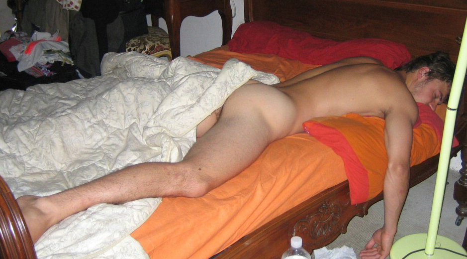 These are just examples of sexy dudes caught sleeping naked: they have been photographed by their room mates or by their friends. I love watching how average guys rest with their uncut cocks out!