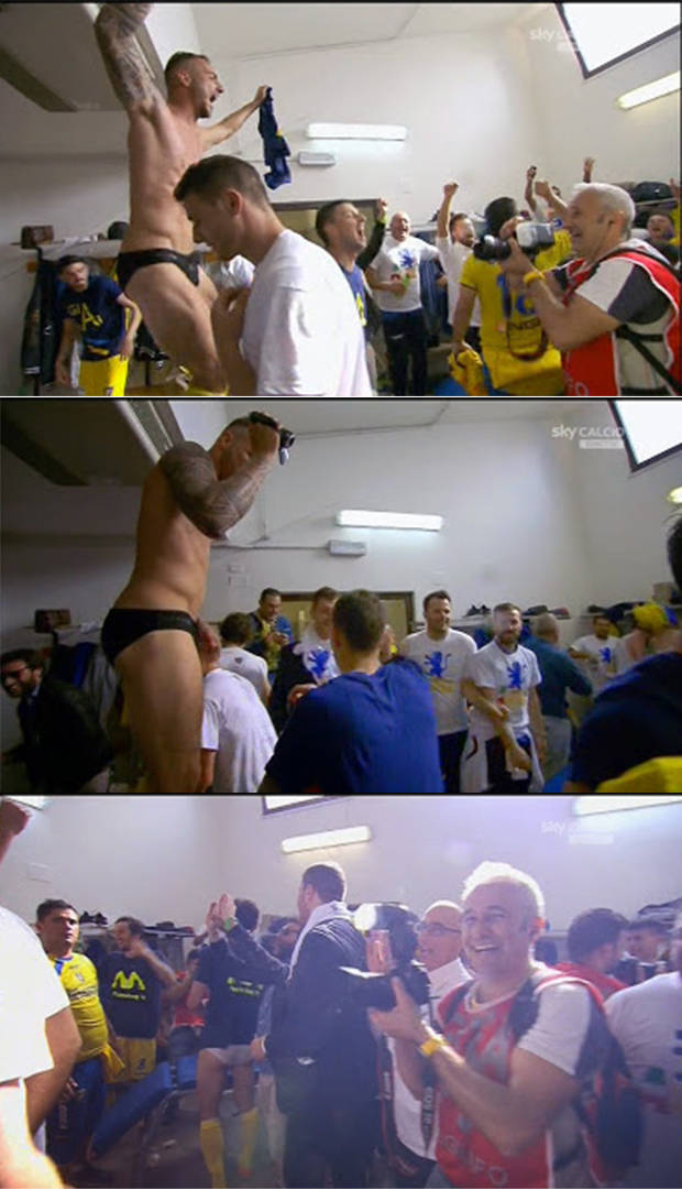 These are italian footballers of the Frosinone team: what a sexy dudes….