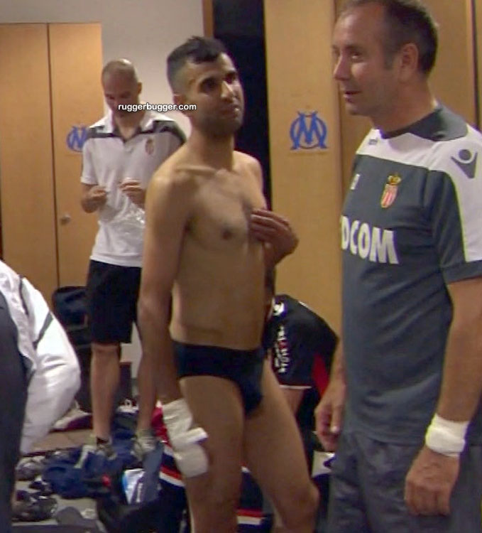 Rugger Bugger, the biggest site of naked sportsmen stuff, has a hidden cam locker room footage of Mounir Obbadi, a Monaco FC footballer. He’s changing in the team locker room. Unfortunately we can only see him in underwear, but his big bulge leaves no doubt!