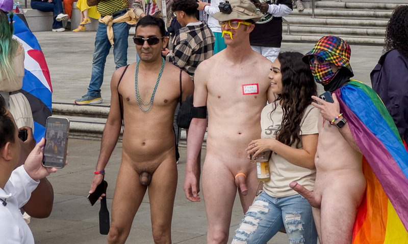Every gay pride is a time of celebration, a time when guys not only want to claim their rights but also feel like partying. And San Francisco’s Gay Pride was a great party, no doubt: thousands of people invaded the city streets and there was no shortage of guys who decided to attend the event completely naked. Sunglasses, extravagant hats, and cheesy accessories were not lacking. Just as there was no shortage of guys who decided to show off their big hard dicks. Well yes, not only am I talking about guys naked in public, but even a dude who is not only naked in the middle of the street, but also shows off his erection. And the girls seem to be having a great time!