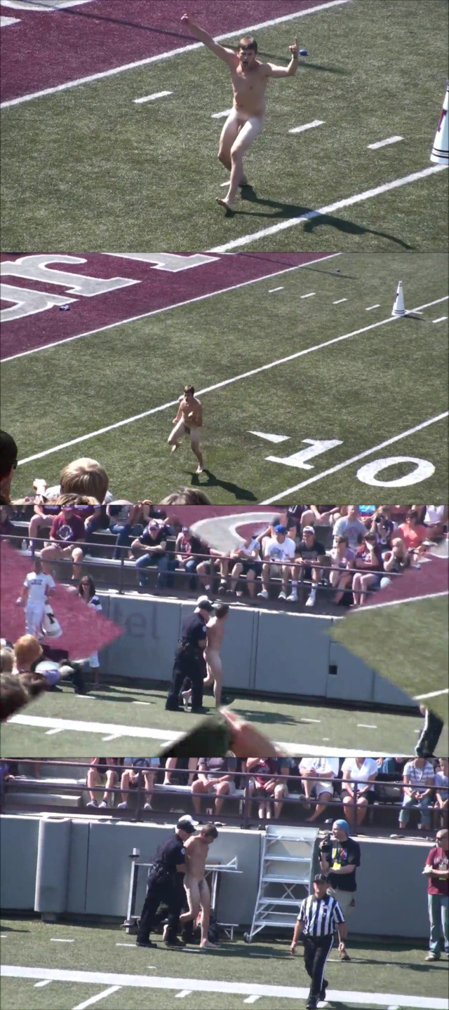 This guy has been able to breach the pitch totally naked, running with his big dick bouncing during a match, in front of the stunned people. Then he has been handcuffed by the Police, but he did a great show!