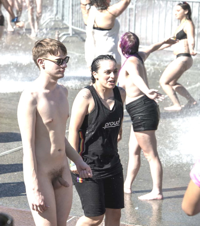 Watching guys getting naked in public places is always thrilling and exciting, but if they are straight that’s much more better, do you agree with me? After staring at those straight guys flashing their cocks in the snow, here you are a handsome straight dude walking naked with a friend during Seattle pride.