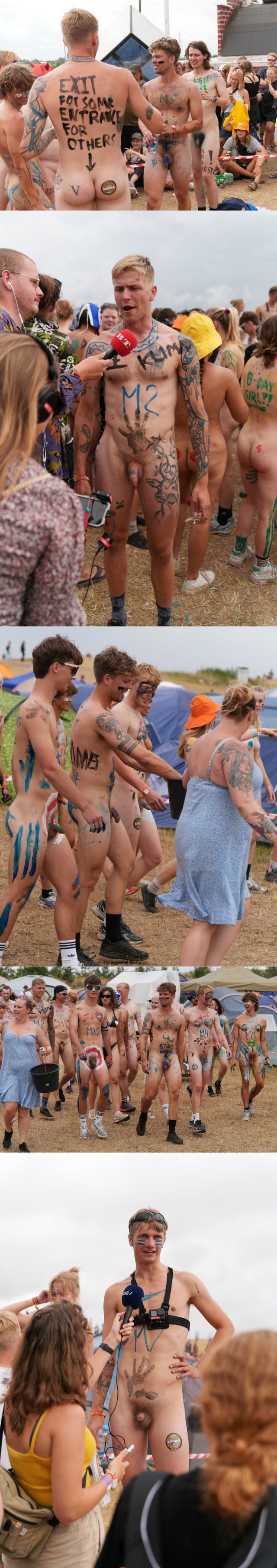 The last time I shared photos of naked guys in public during the Roskilde Festival was last year. Today it’s time to update the collection of candid photos from one of the most anticipated events of the year. Yes, because at Roskilde festival we can see hundreds of guys running around naked, without any clothes on, in front of spectators cheering for them. If you like to see guys caught naked in public then this festival is worth a trip. But if you can’t go in person, fear not! Here on Spycamfromguys you can find all the updates and new photos of the straight guys who participated in this unique event. The shots are different, we can see the guys running around, while talking to each other but also while being interviewed, naked of course.