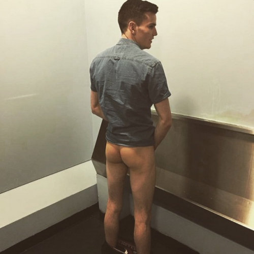 I’ve already told you that finding a guy peeing with his trousers down is a rare opportunity, here you are a boy caught while peeing at the urinals and showing off his pretty bum.