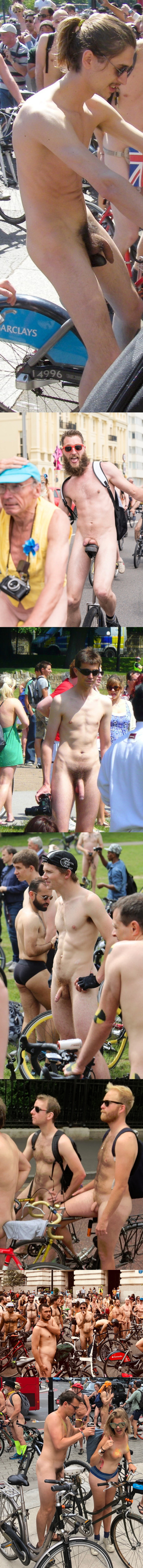Here you are a bunch of new shots from nice guys riding their bikes naked for the world naked bike ride. I choosed some guys with big and uncut dicks, I hope you appreciate!