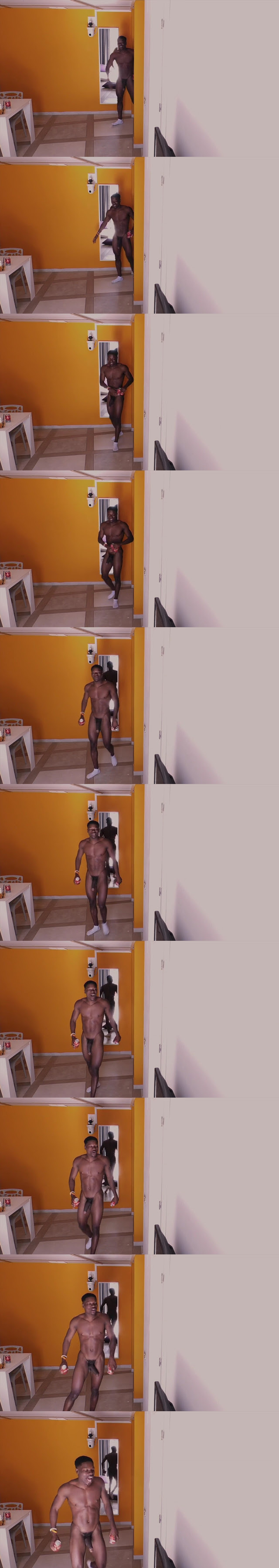 Walking naked and showing off his huge cock