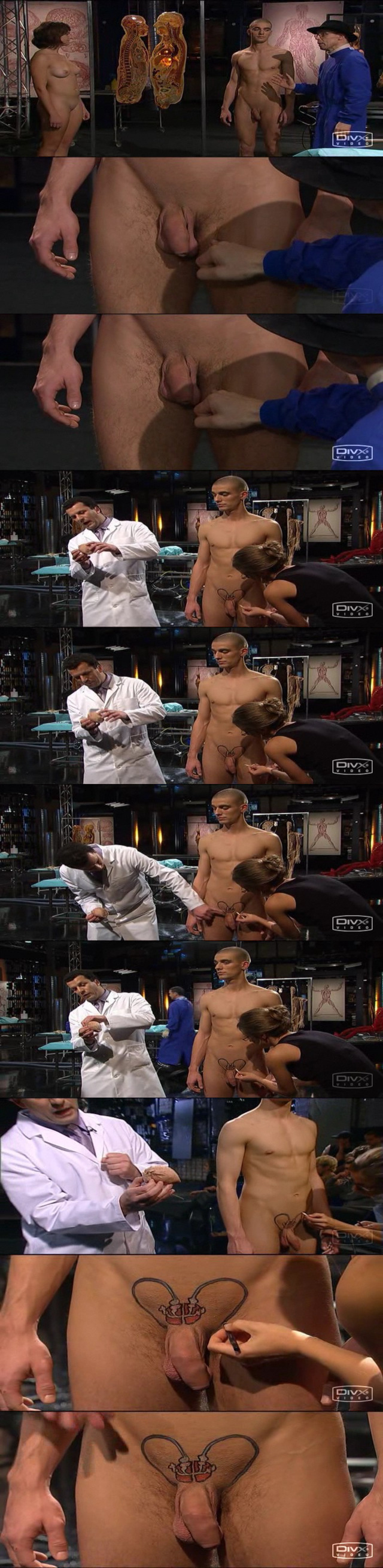 If you missed the episoded on TV now you can revive those moments thanks to EricDeman who posted 8 videos you can’t miss. Now I share with you some frames from the TV show: watch this studly guy being totally naked in a TV studio, without any undue embarrassment or discomfort. His uncut dick is really big and the anchor woman even draws on his pube to better explain the characteristics of the male reproductive organ.