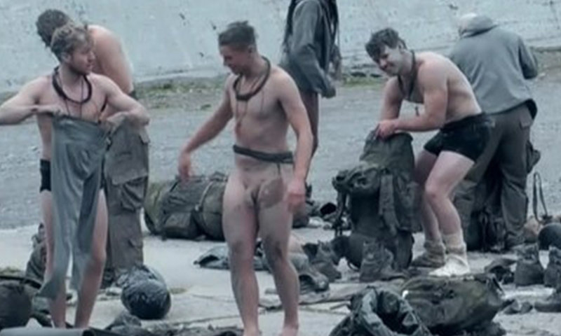 After wrestling in thick mud, the participants were directed towards a row of sinks to wash off with nothing but a few taps spouting out freezing cold water. That’s why he got totally naked and he showed his cock on TV.