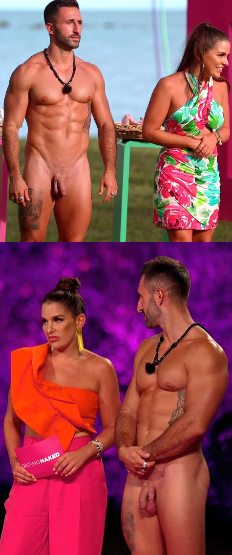 If you do a search here on Spycamfromguys blog for Naked Attraction you will get a lot of results because this TV dating show has enthralled all of us and discovering new guys appearing completely naked on TV each time has been exciting and thrilling. We have seen both straight and gay guys, tattooed or not, shaved or hairy, in short there is something for everyone. Now we need to focus on this new TV dating show called “Dating Naked.” Today is my first official post about this new program and I can say that we start with a bang. We can see a straight stud proudly showing off his muscular body without wearing a single sock. And of course he also shows his big uncut cock totally shaved. How’s that for a start?