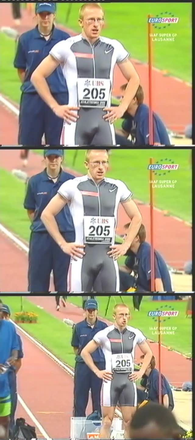You can revive the hottest moments from the world of sports watching some sportsmen wearing tight spandex singlets and revealing their cock bulges, I’ve posted so many shots featuring nice athletes who simpy play sport not considering that lots of people (including me) are drooling once they reveal their big bulges. Here you are some more photographs from a sexy blonde runner in glasses wearing a spandex singlet that leaves little to imagination!