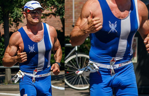 This muscled man has been photographed while running during a local competition. Sure he’ll win for his dick size, lol! Who knows if he’s aware of his enormous bulge bouncing in the middle of his legs!