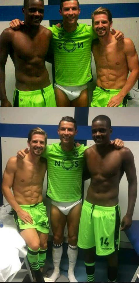 We’ve already seen Cristiano Ronaldo posing in underwear during a group photo with his team mates, today we can enjoy these close-ups of his enormous bulge!
