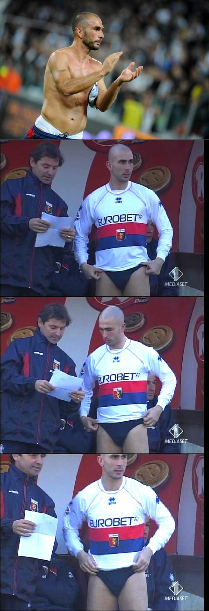 Marco di Vaio’s joy is uncontainable and uncontrollable, and at the end of the game he takes off his shorts and stays in his underwear even though he knows there are television cameras. The famous Italian footballer shows everyone his big package and has no problem with being framed! Enjoy the full video from Eric Deman video library.