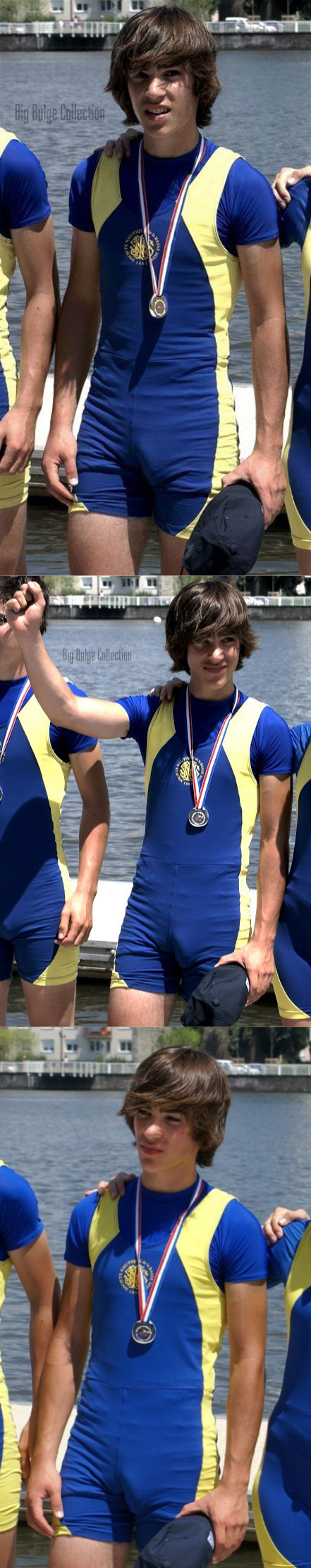 This young rower smiles to the camera after his victory: does he know that 1000’s of us are drooling watching his enormous bulge?